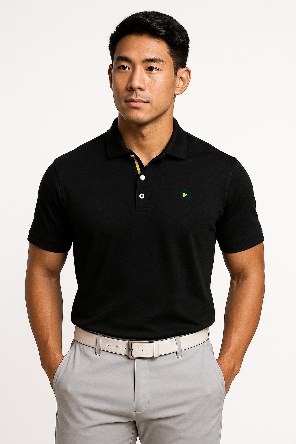 Introducing the Divot Away Strip Golf Polo—because why blend in when you can strip down the competition? This sleek black polo is as sharp as your swing and as bold as your banter. Designed for those who like their golf gear with a side of stealth, it’s perfect for sinking putts and creeping up on the leaders without their knowing. Wear it, own it, and remember: the only thing better than your game is your shirt – you sly dog!
